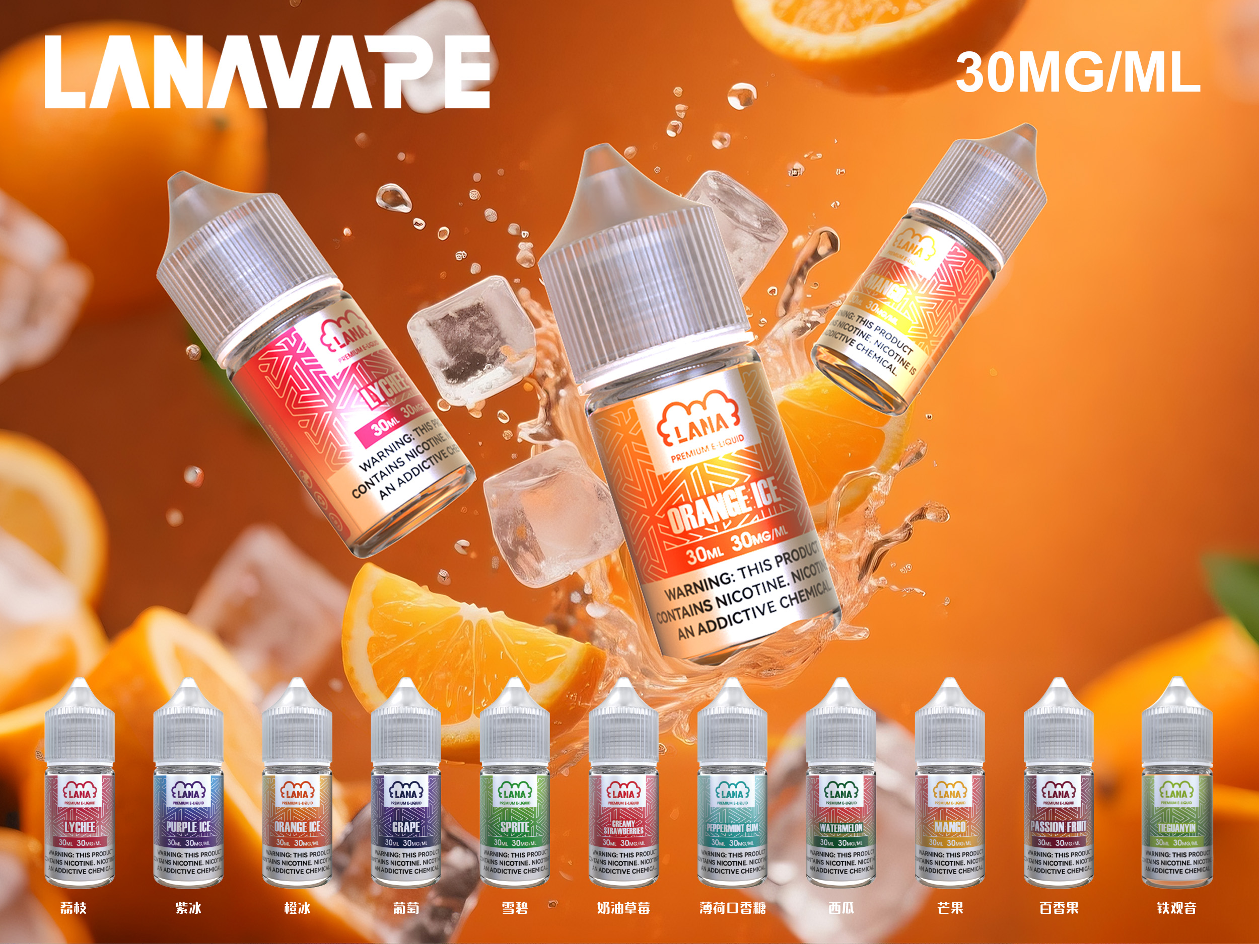 荔枝, 紫冰, 橙冰, 葡萄, 雪碧, 奶油草莓, 薄荷口香糖, 西瓜, 芒果, 百香果