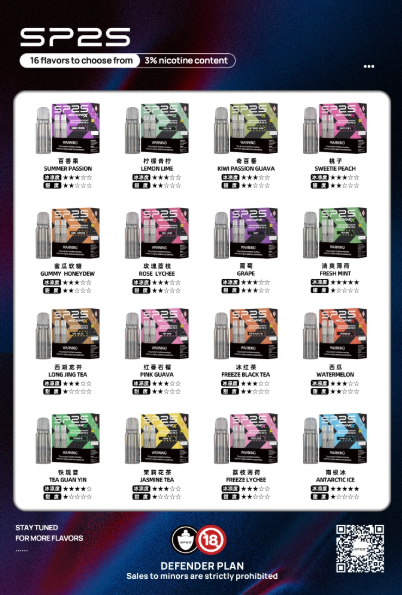葡萄, 百香果, 南極冰, 鐵觀音, 西瓜, 薄荷, 檸檬青檼, 桃子, 茉莉綠茶, 荔枝薄荷