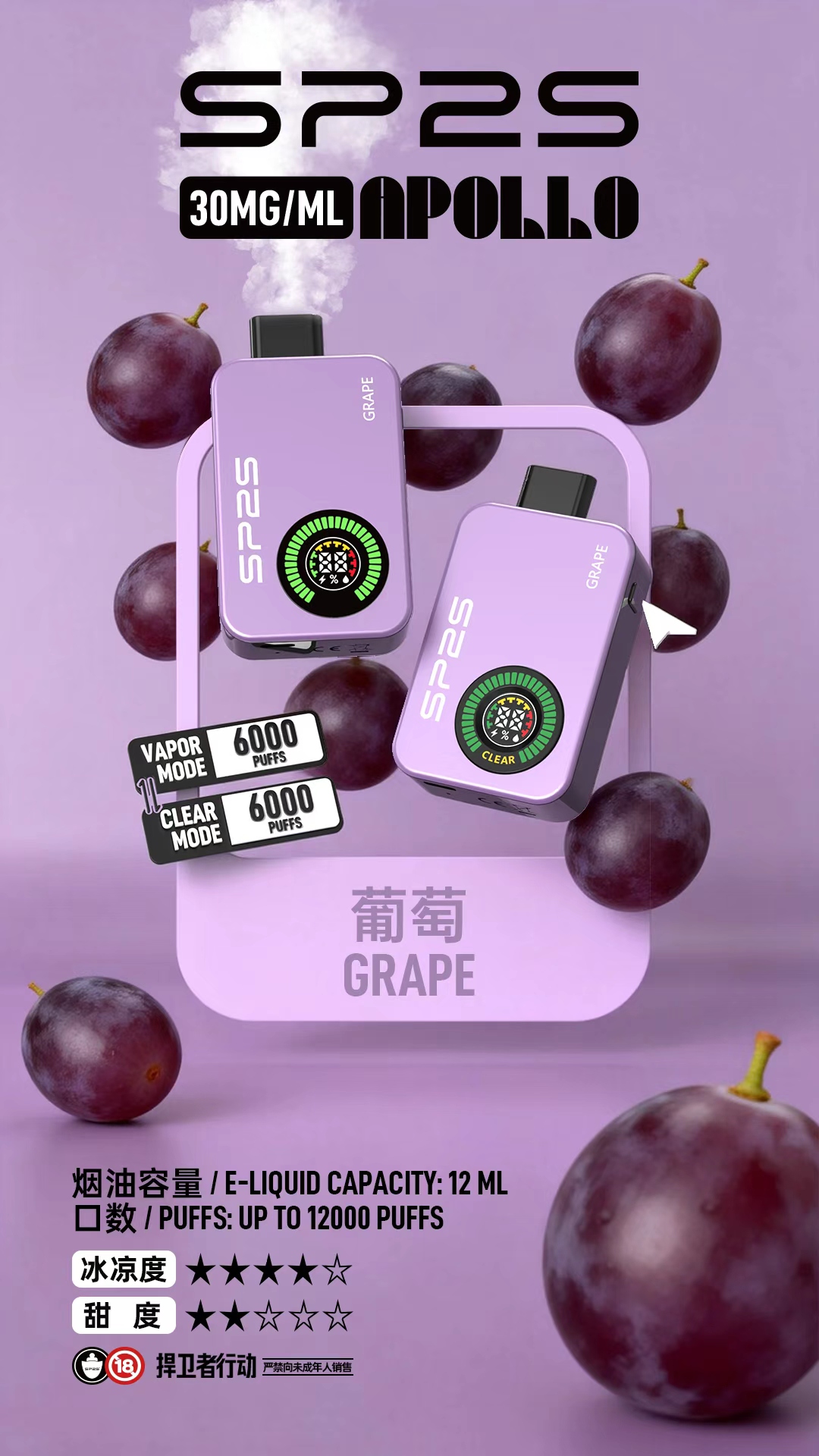 SP2S12000口一次性電子煙(可充電)【買十隻隨機贈送一隻,送完為止!!】